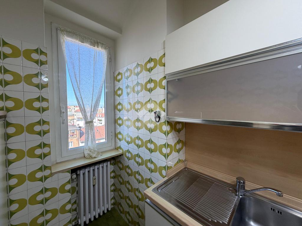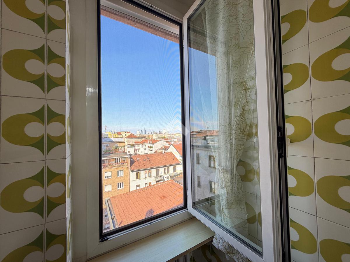 Il piano alto garantisce tranquillità e ottima luminosità. Ascensore fino al settimo piano, ultimo tratto con scale.
