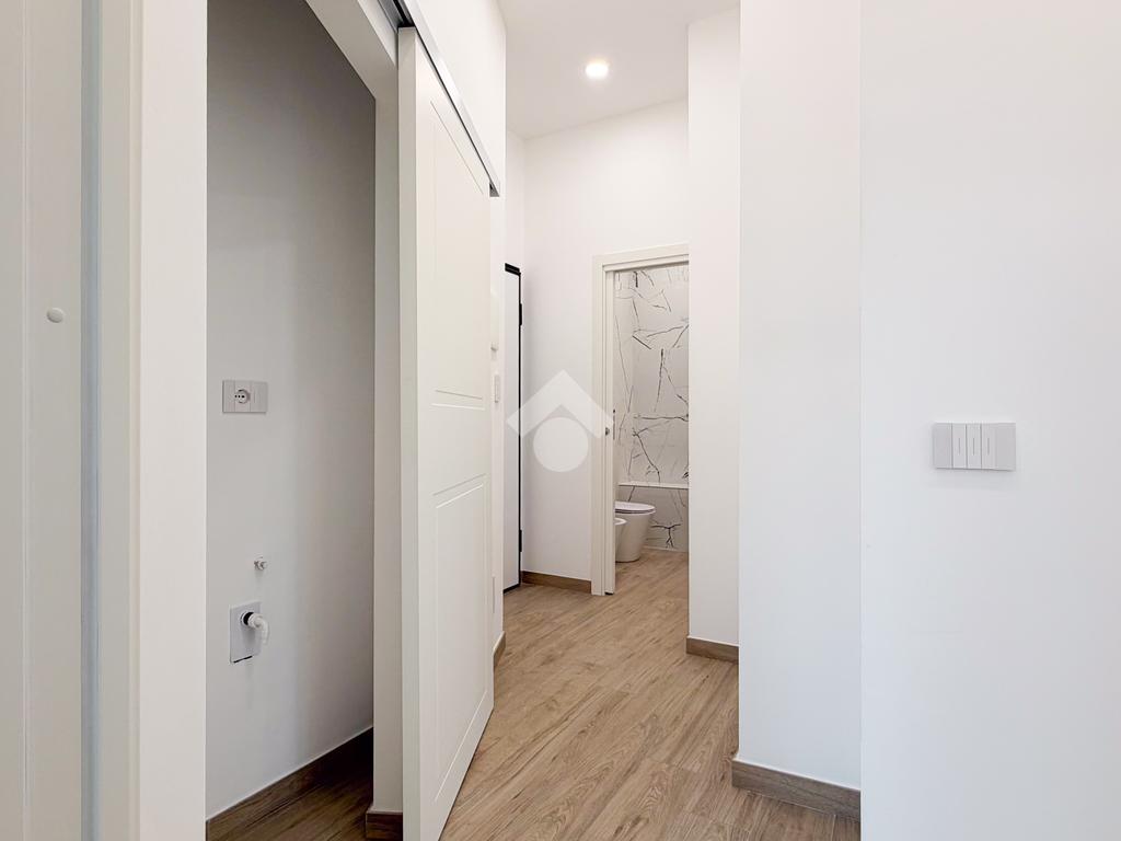 Proponiamo in vendita elegante bilocale finemente ristrutturato con materiali di pregio, situato al quarto piano di uno stabile ben tenuto, dotato di ascensore e servizio di portineria intera giornata.