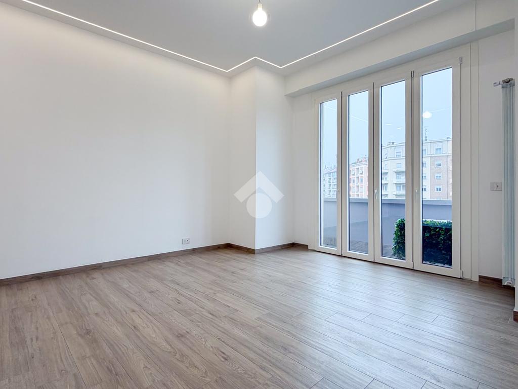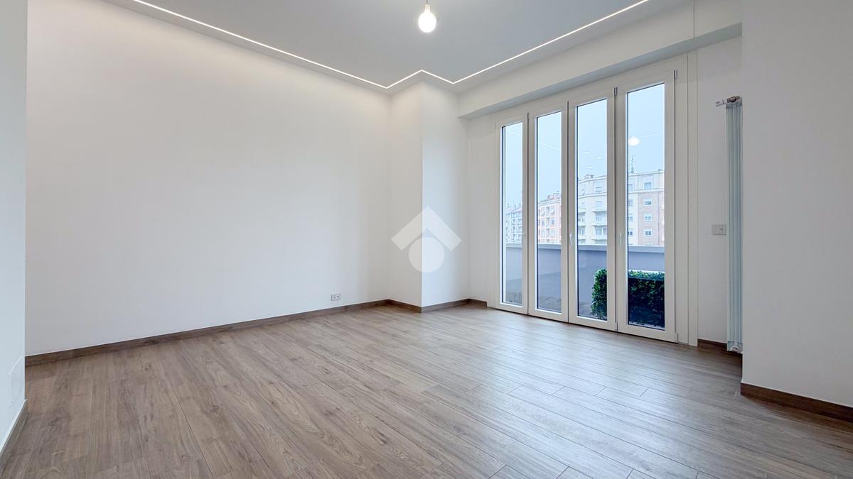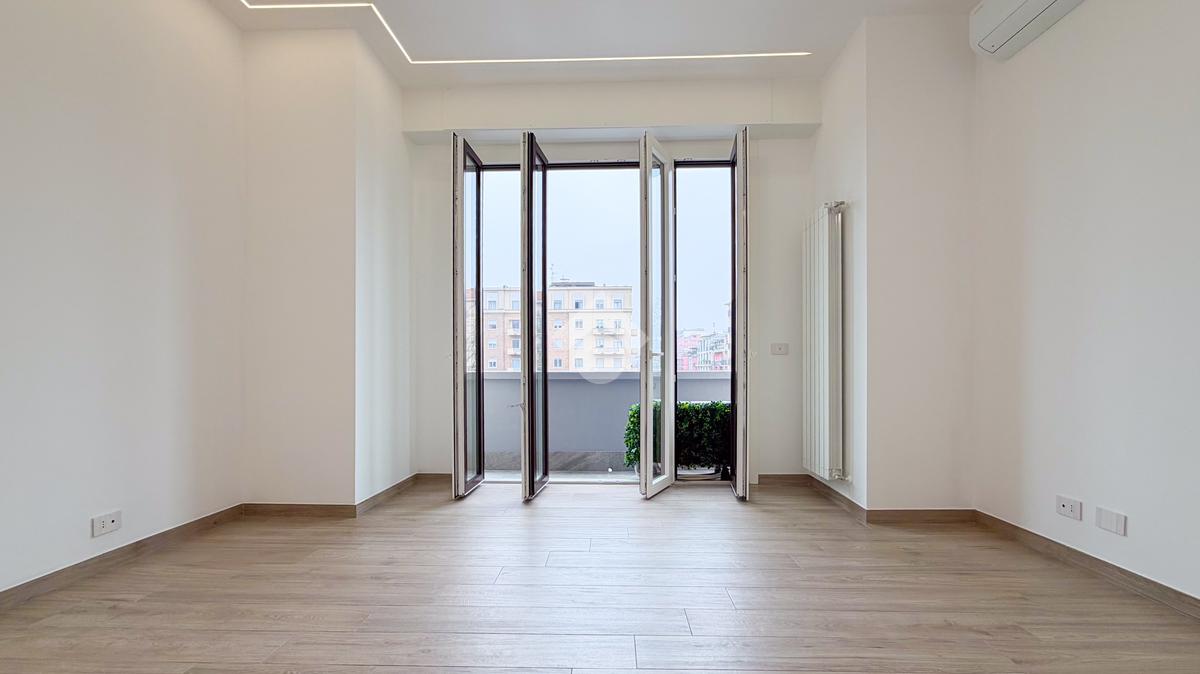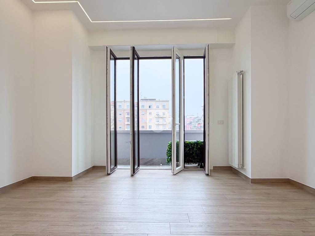 L’appartamento è così composto: ingresso su corridoio che conduce alla zona giorno con cucina a vista e accesso al balcone affacciato su Viale Argonne, che garantisce ottima luminosità durante tutta la giornata.